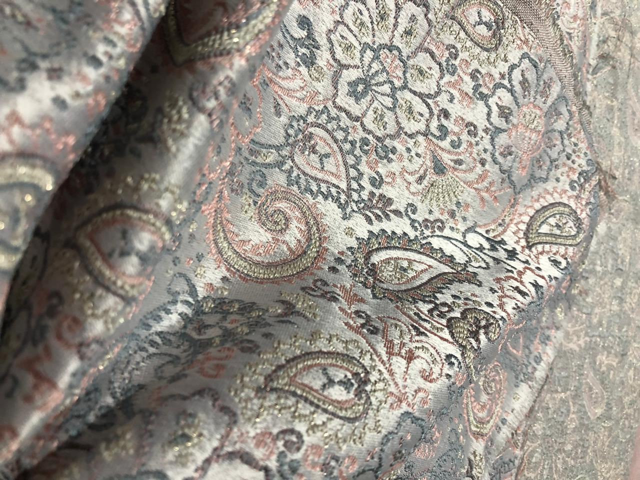 Silk Brocade fabric  jacquard with with subtle embroidery 54"available in 2 colors pink and grey and lilac grey BRO1034[1/2]