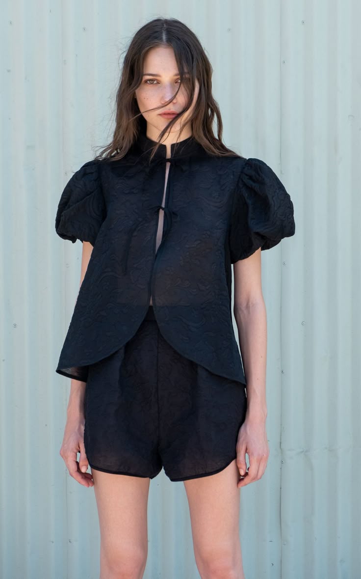 This pure silk organza in classic black weighs approximately 100 grams per meter and features a slightly stiff hand that provides excellent structure. Lightly sheer and airy, it holds shape beautifully while maintaining an elegant drape. The smooth texture and natural silk sheen give it a timeless, luxurious finish, making it ideal for designs that require defined volume and form.