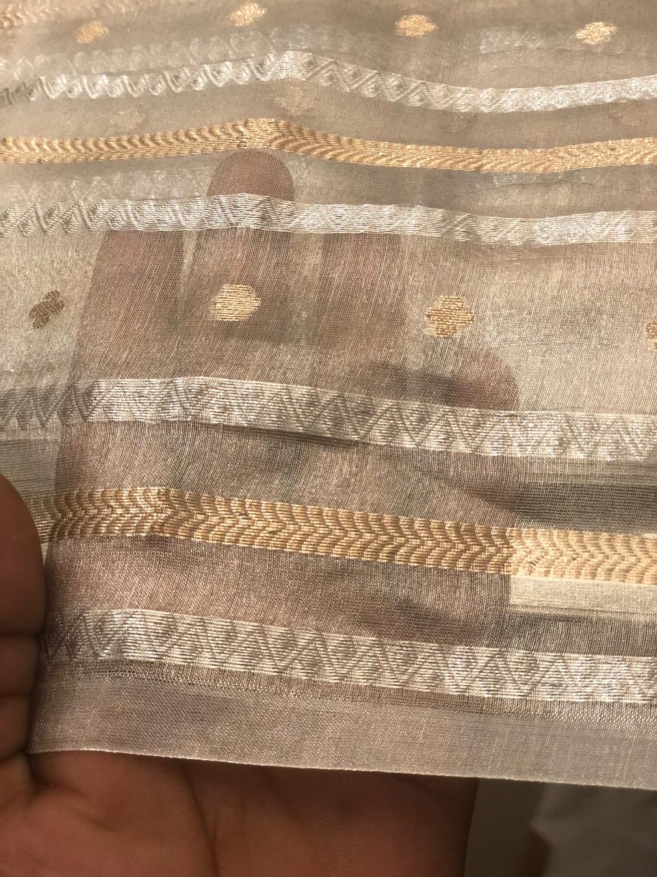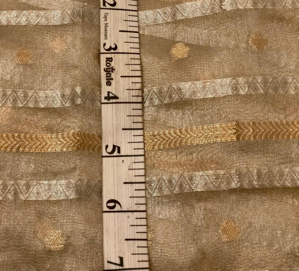 100% Pure Silk metallic tissue 44" wide silver x gold with stripes of silver and gold and subtle motifs [18923]