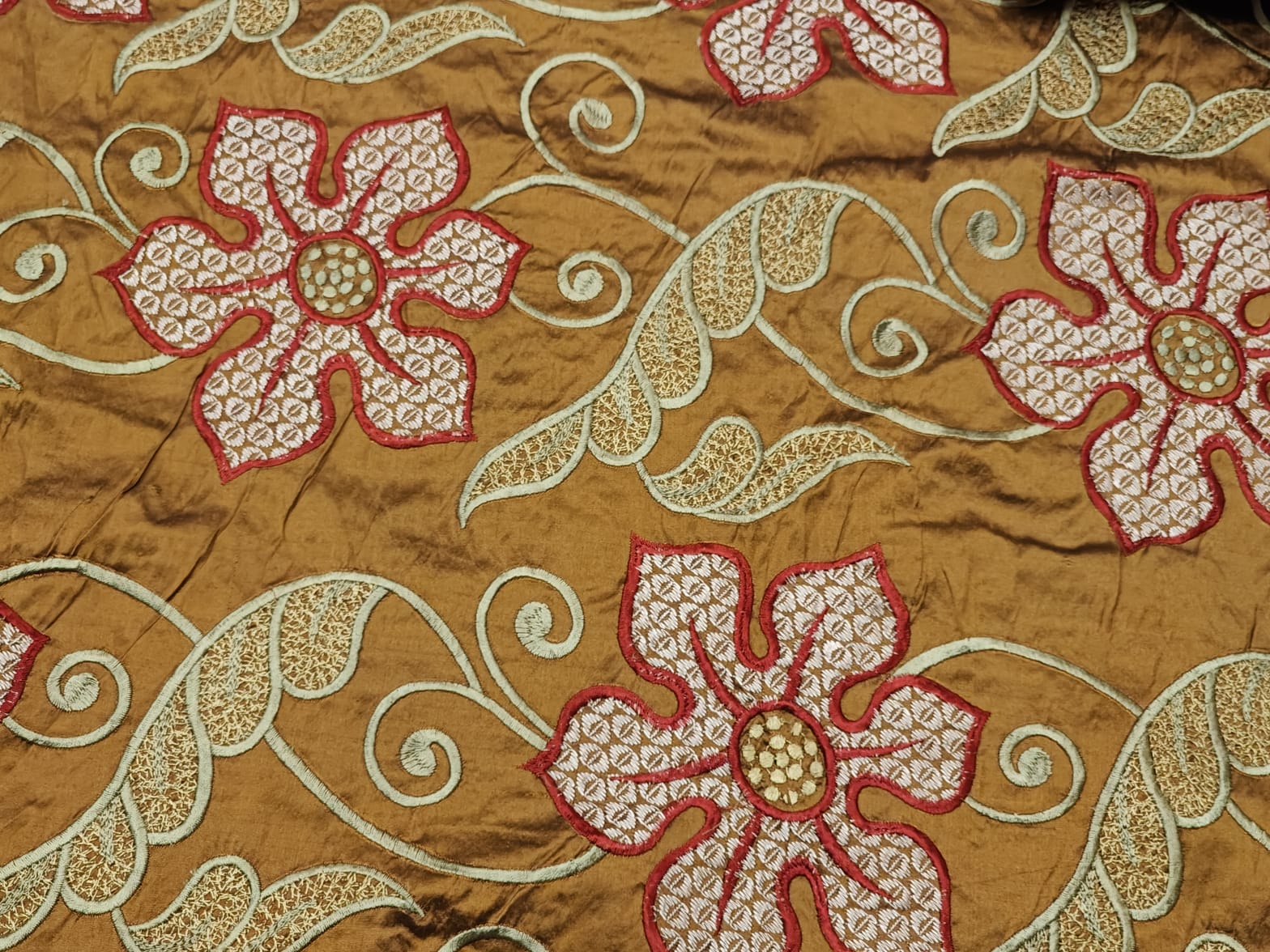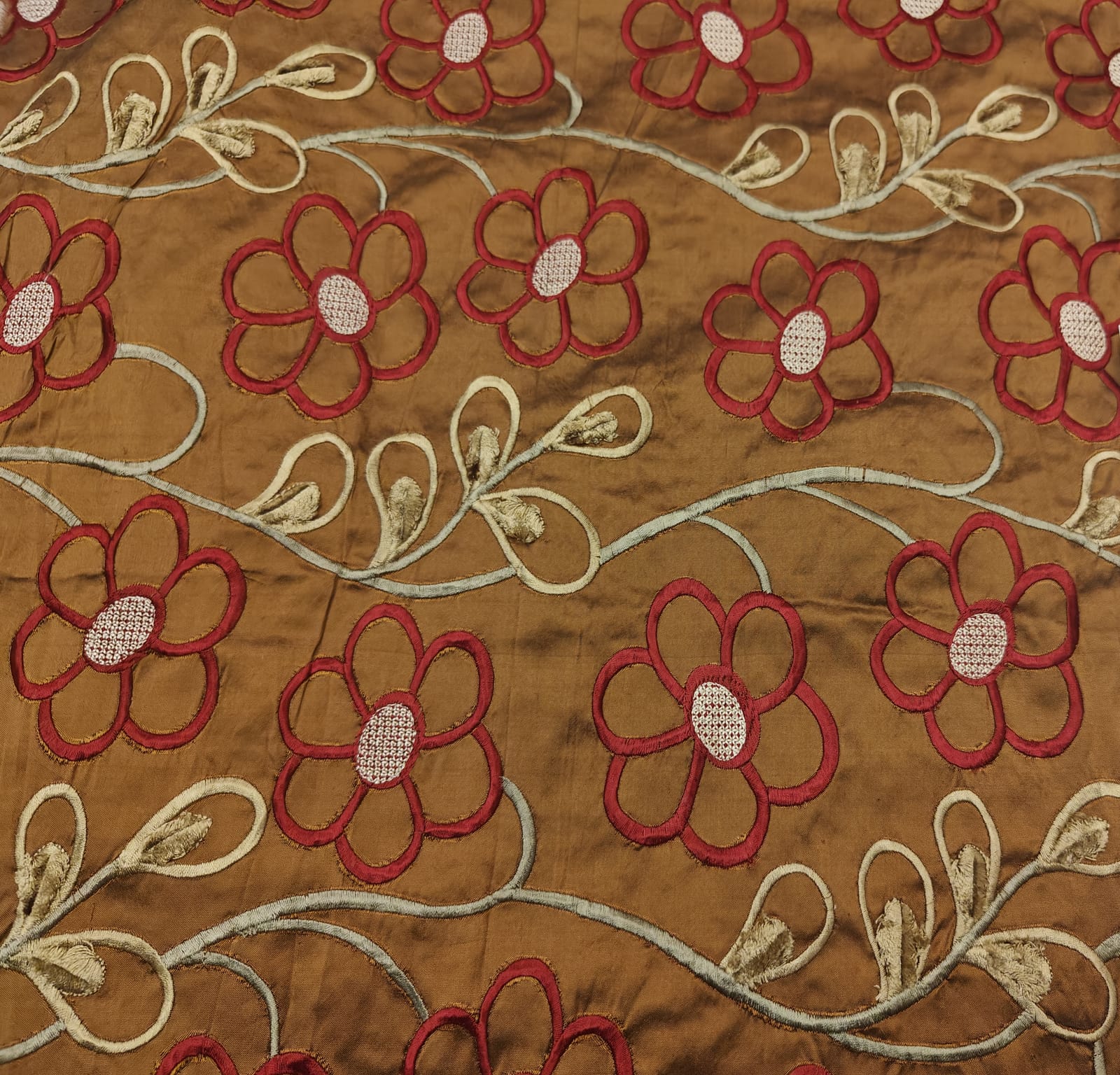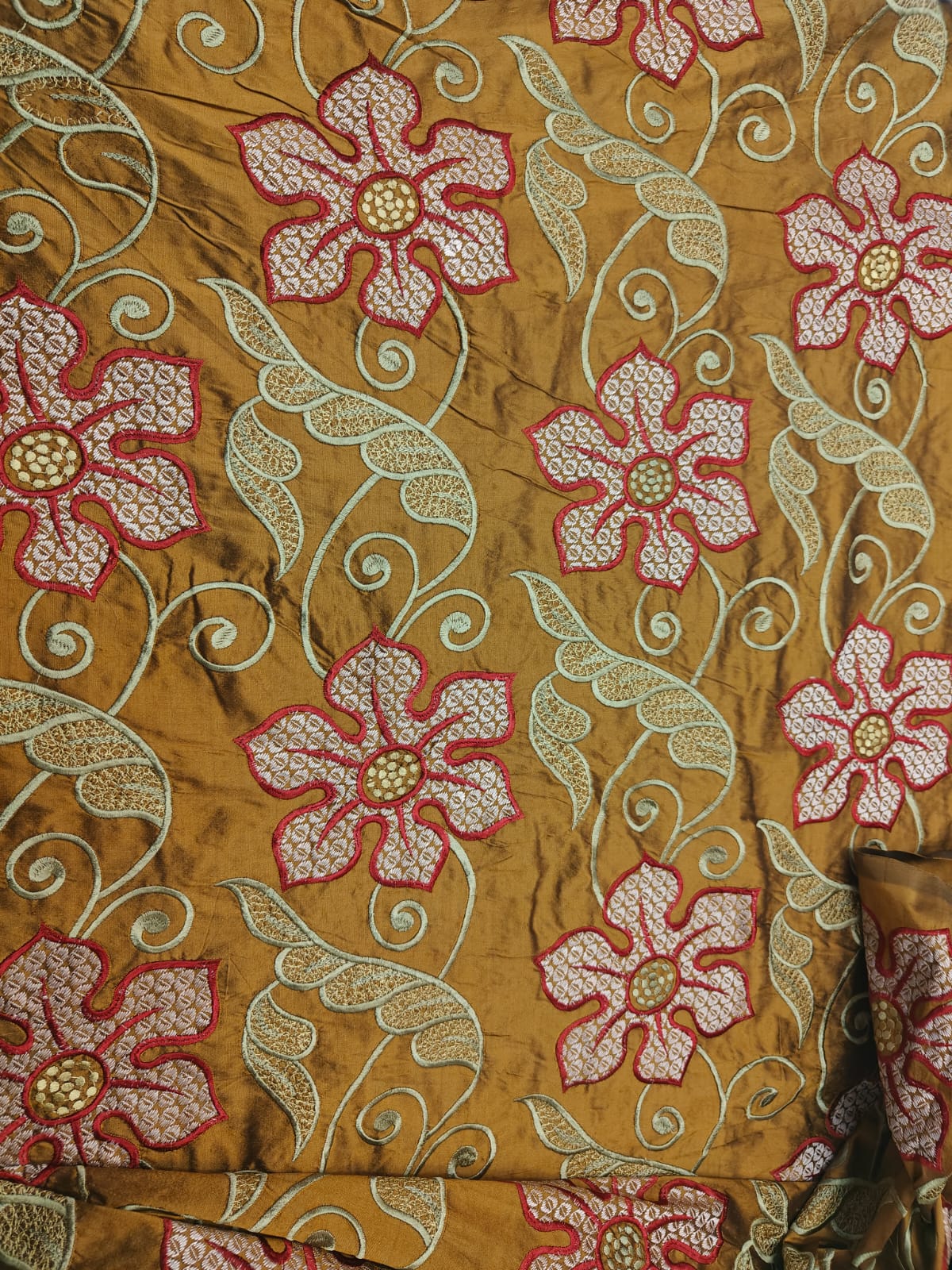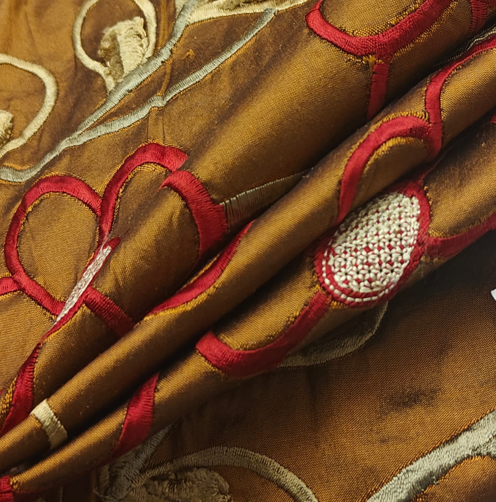Dupioni (also referred to as Douppioni or Dupion) is a plain weave crisp type of silk fabric, produced by using fine thread in the warp and uneven thread reeled from two or more entangled cocoons in the weft. This creates tightly-woven yardage with a highly-lustrous surface.It is sometimes confused with 'shantung' or 'raw silk' which is usually lighter in weight and has a finer weave than dupion.