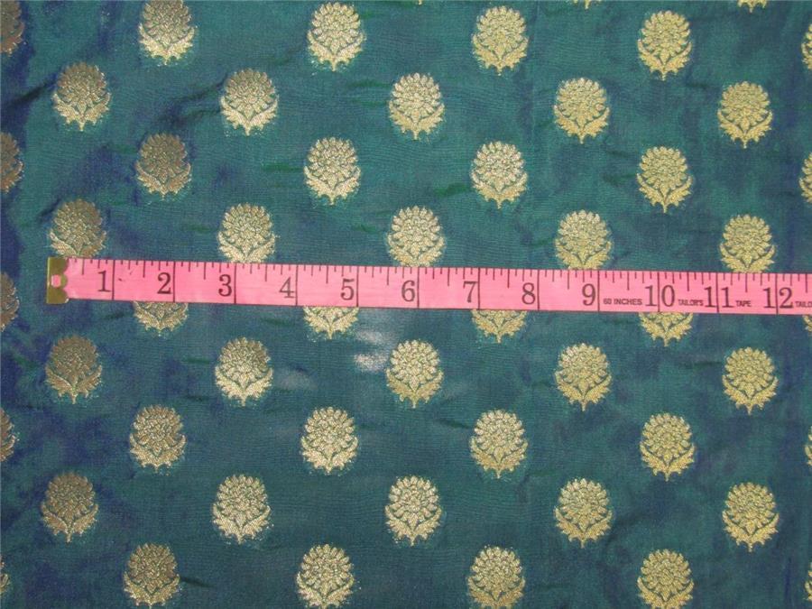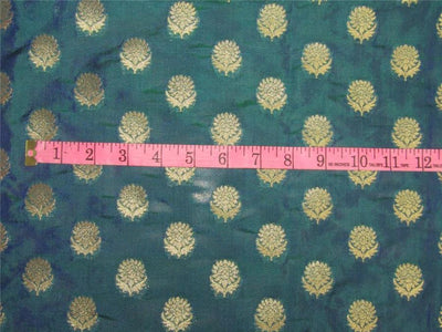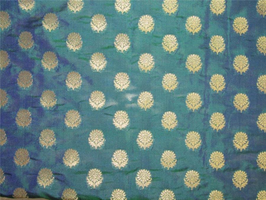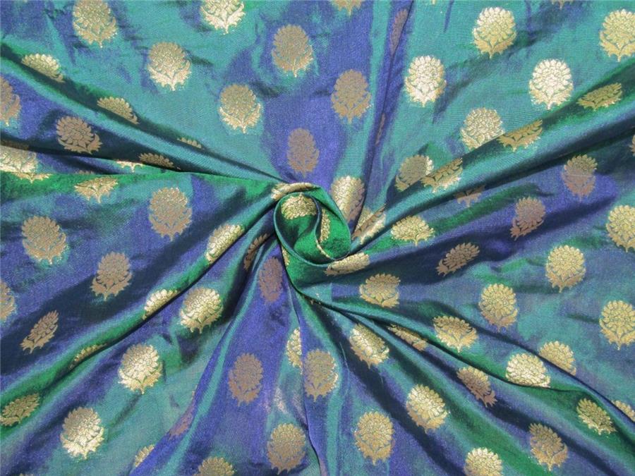Brocade fabric kingfisher green x metallic gold color 44" wide