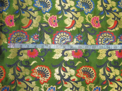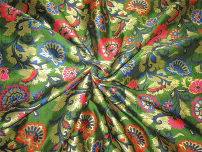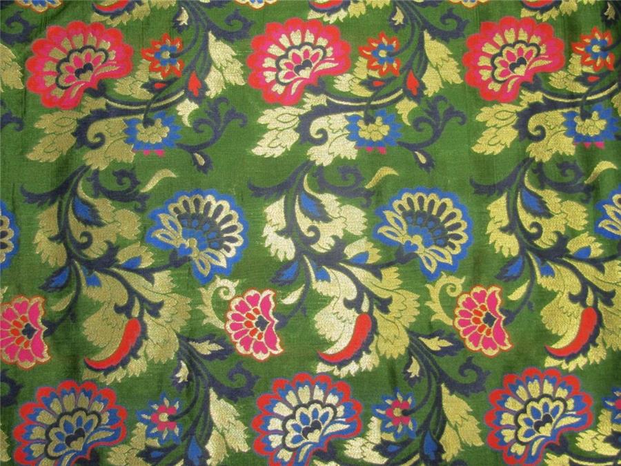 Brocade fabric redish orange ,blue ,green and metal gold color 44"wide