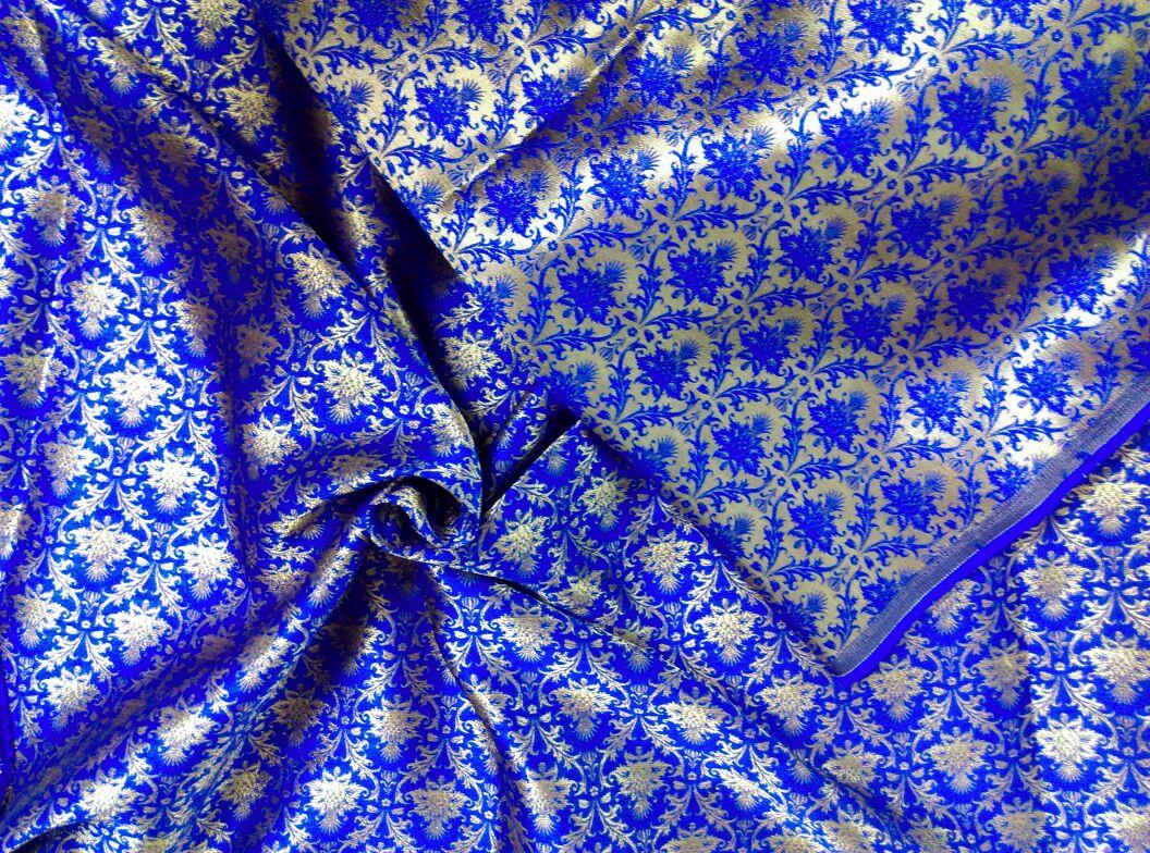 Reversible Brocade fabric royal blue x gold 56" BRO563[2]