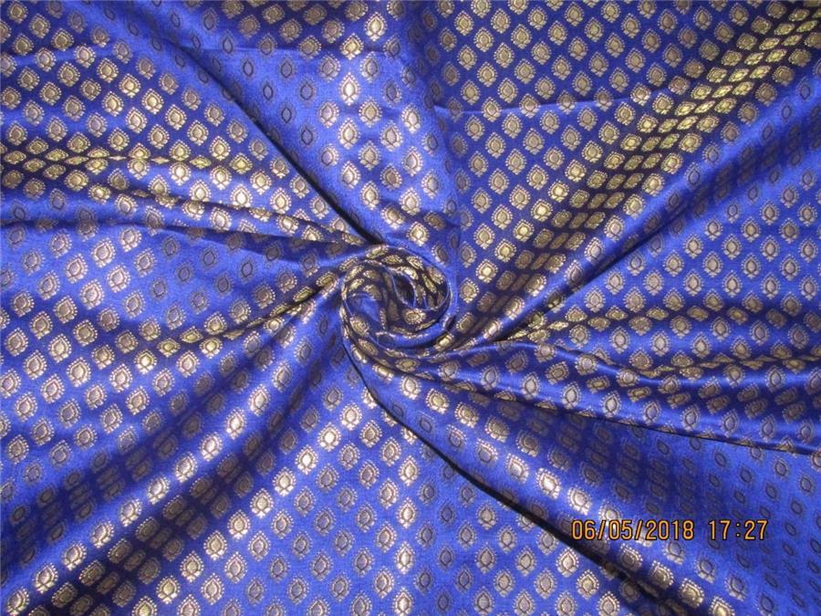 Silk Brocade Fabric 3.25 YARDS Royal blue x metallic gold color 44"