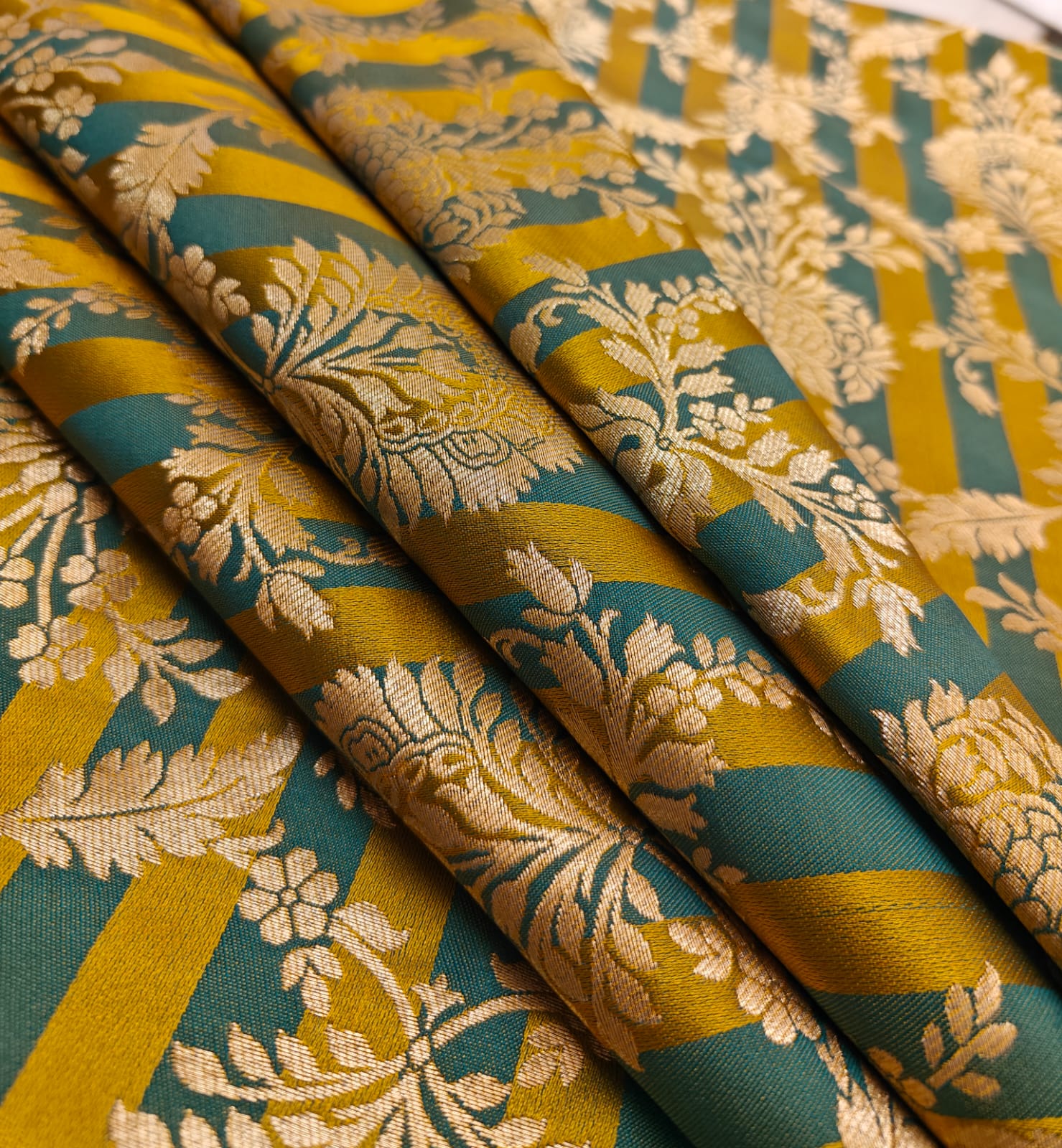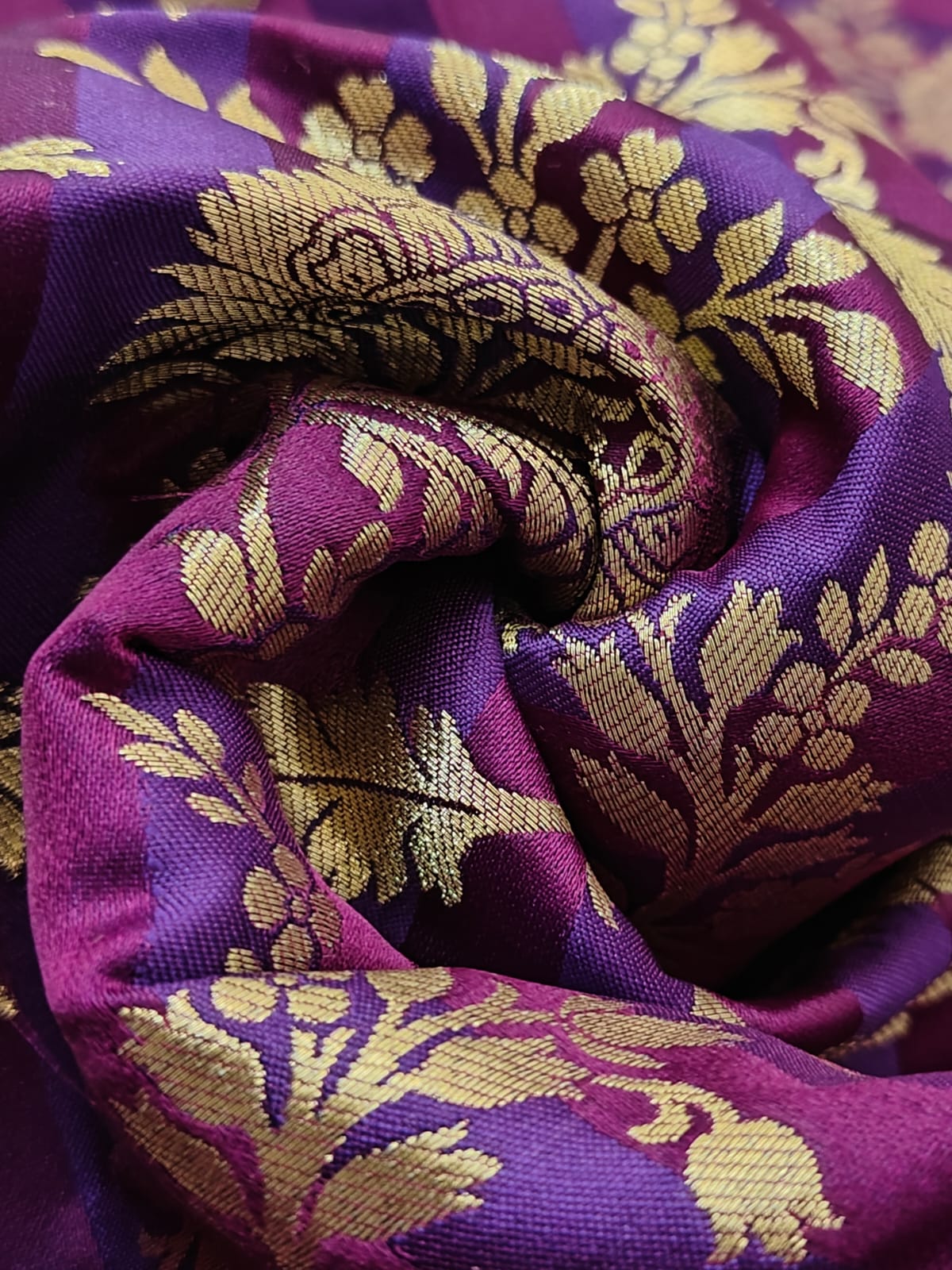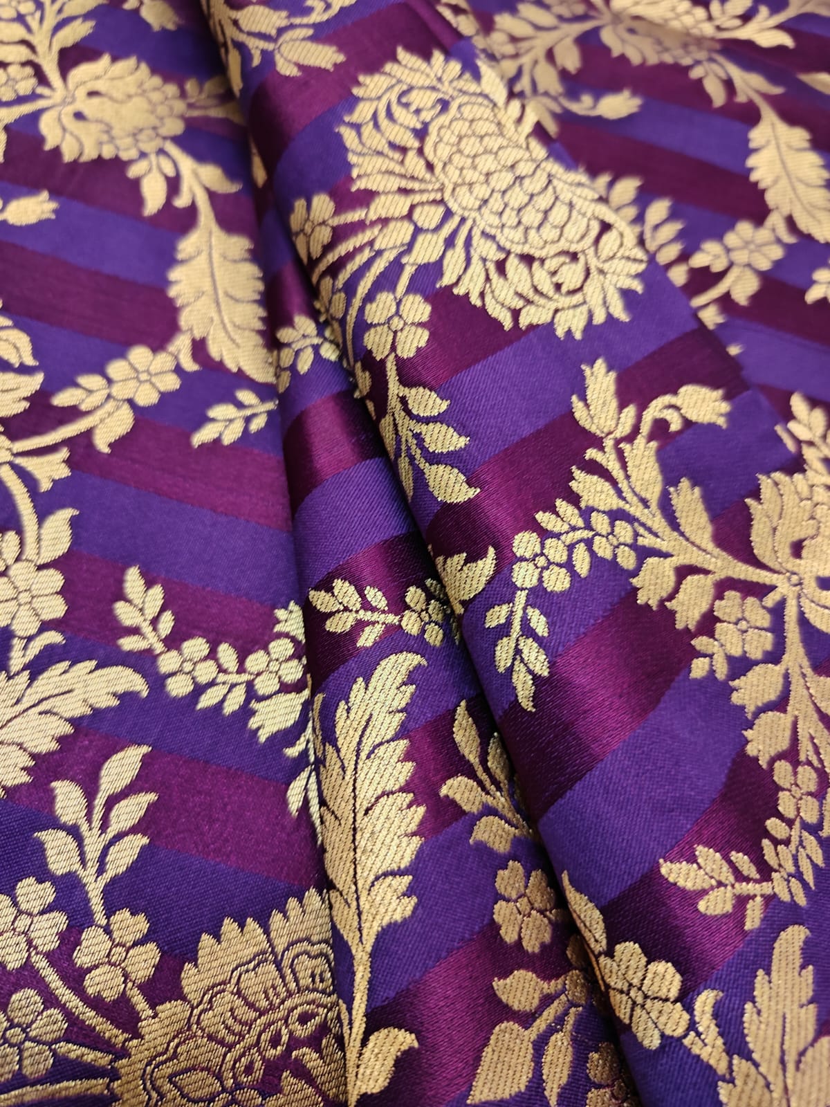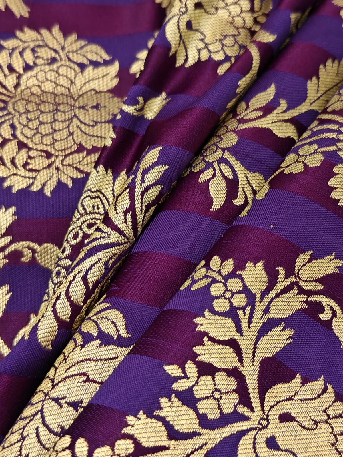 Silk Brocade fabric available in 4 colors purple/mulberry ,red wine /green ,mustard/green and teal blue/teal green 44" wide BR1159