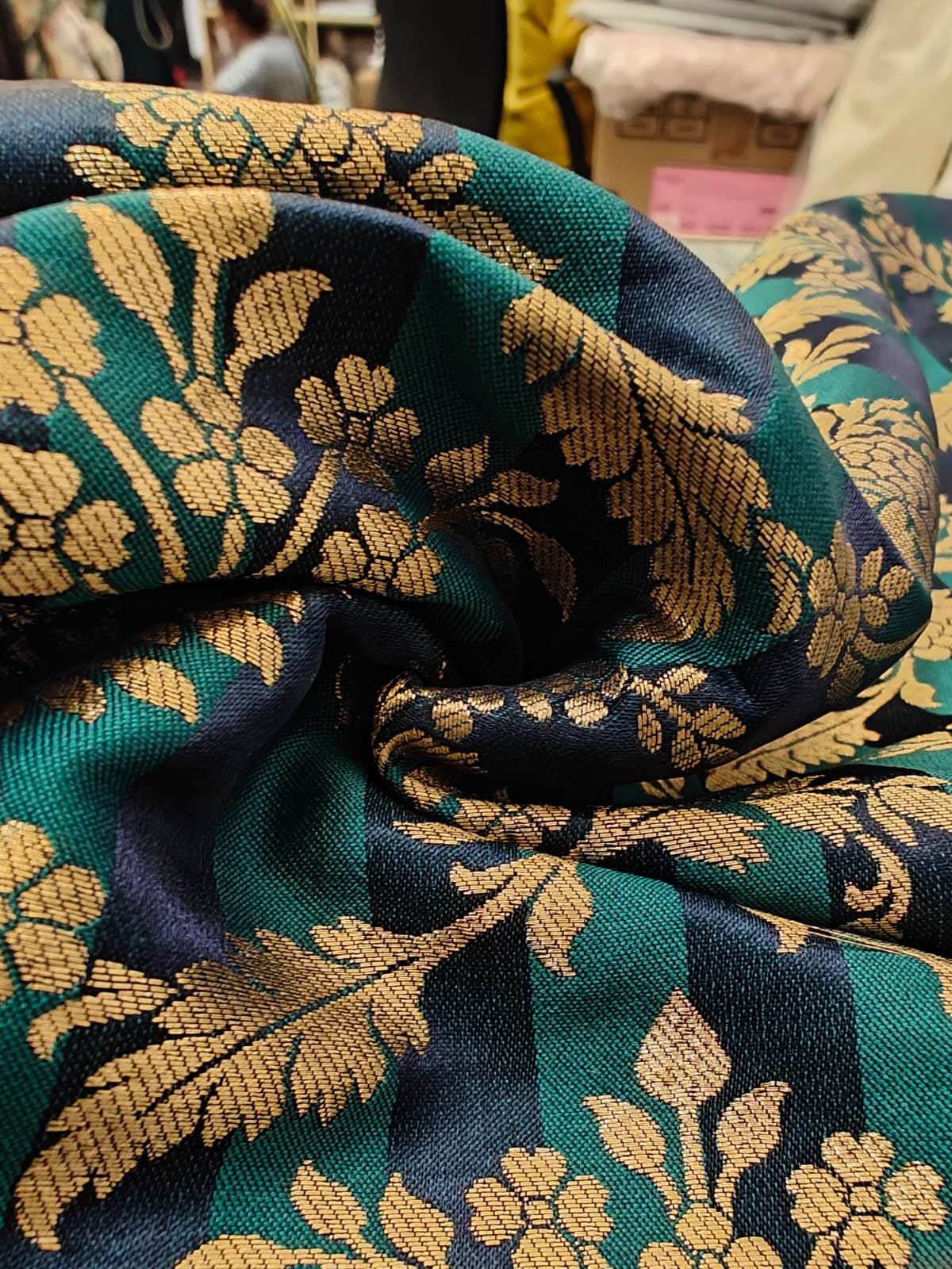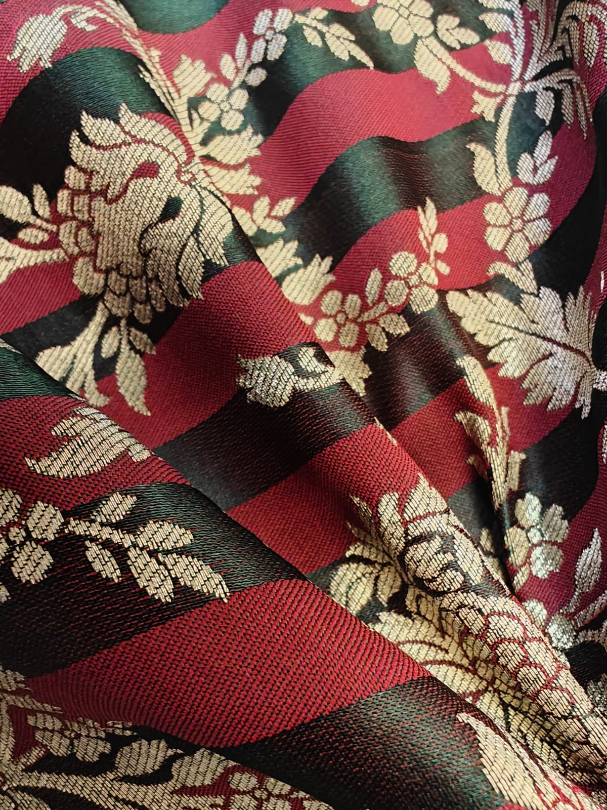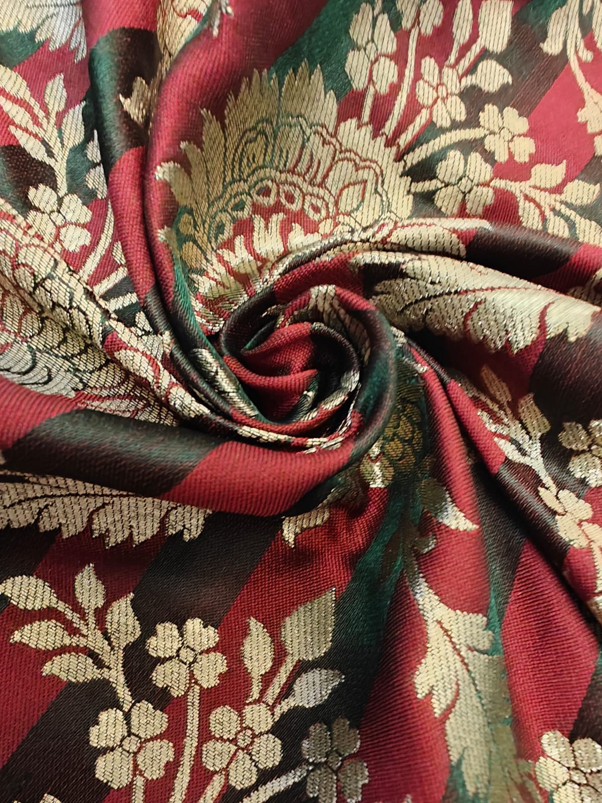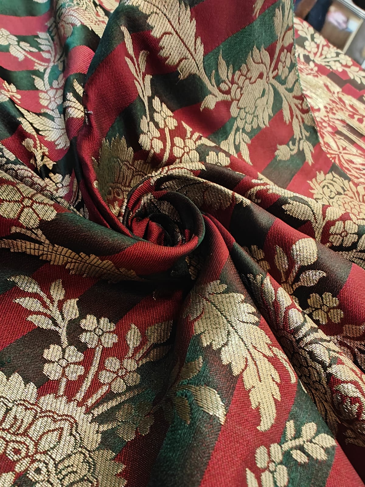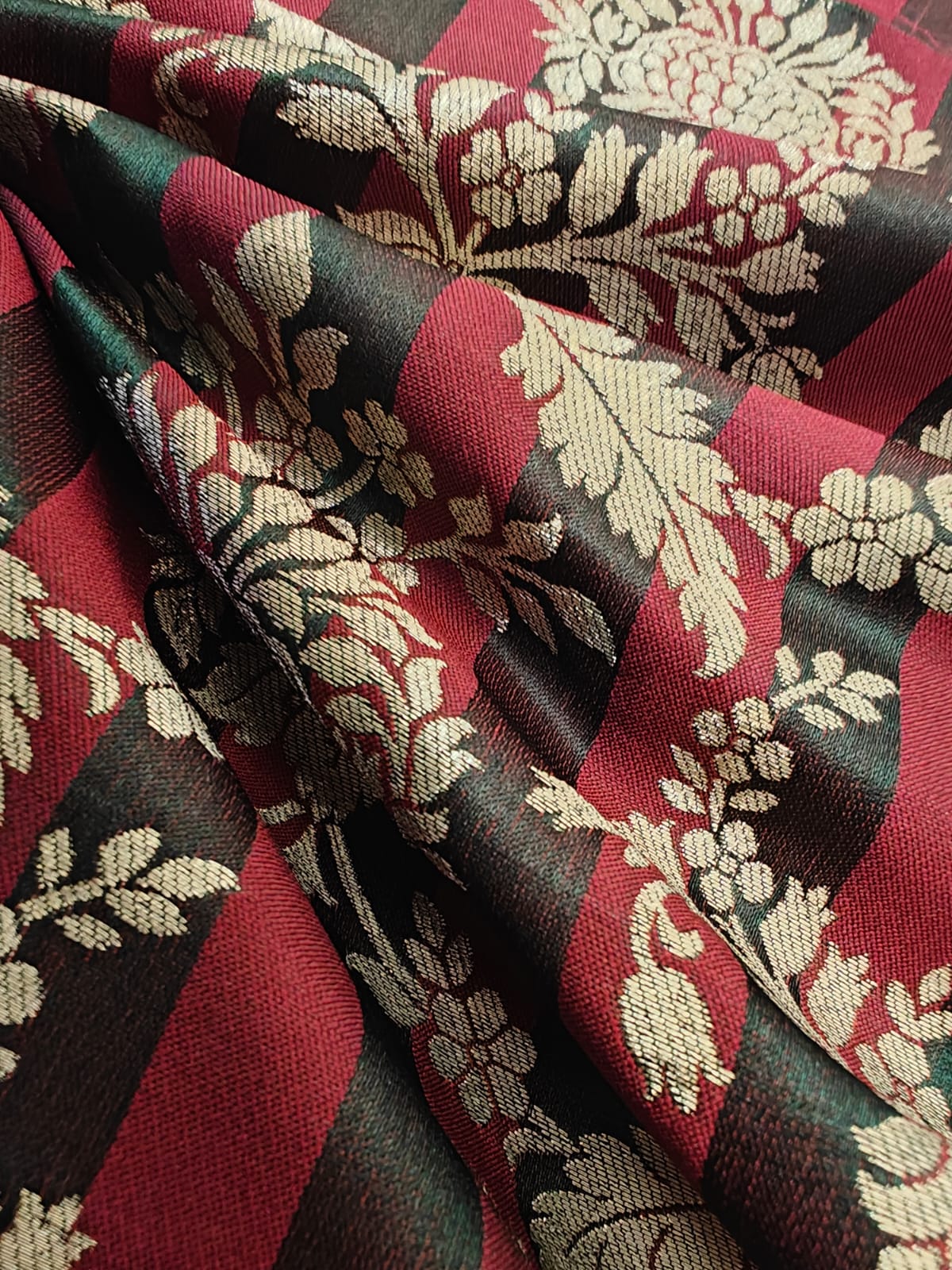 Silk Brocade fabric  available in 4  colors purple/mulberry ,red wine /green ,mustard/green and teal blue/teal green 44" wide BR1159 - The Fabric Factory
