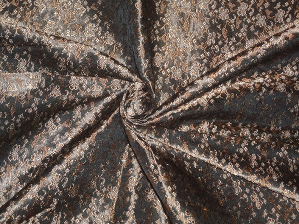 Silk Brocade Fabric Black, Brown x Gold Color 44" wide Bro446[5]