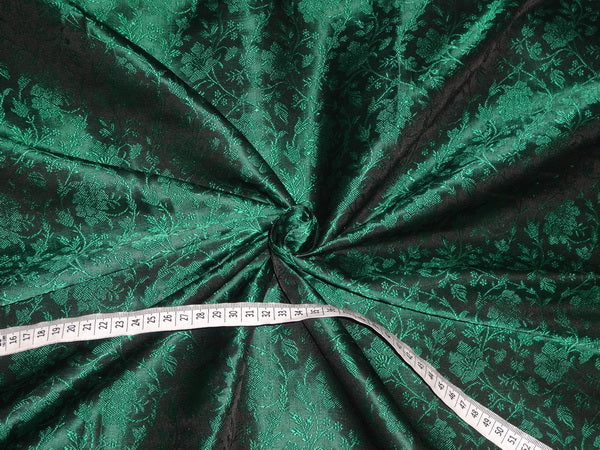 SILK BROCADE FABRIC BOTTLE GREEN X BLACK COLOR 44" wide BRO488[1]