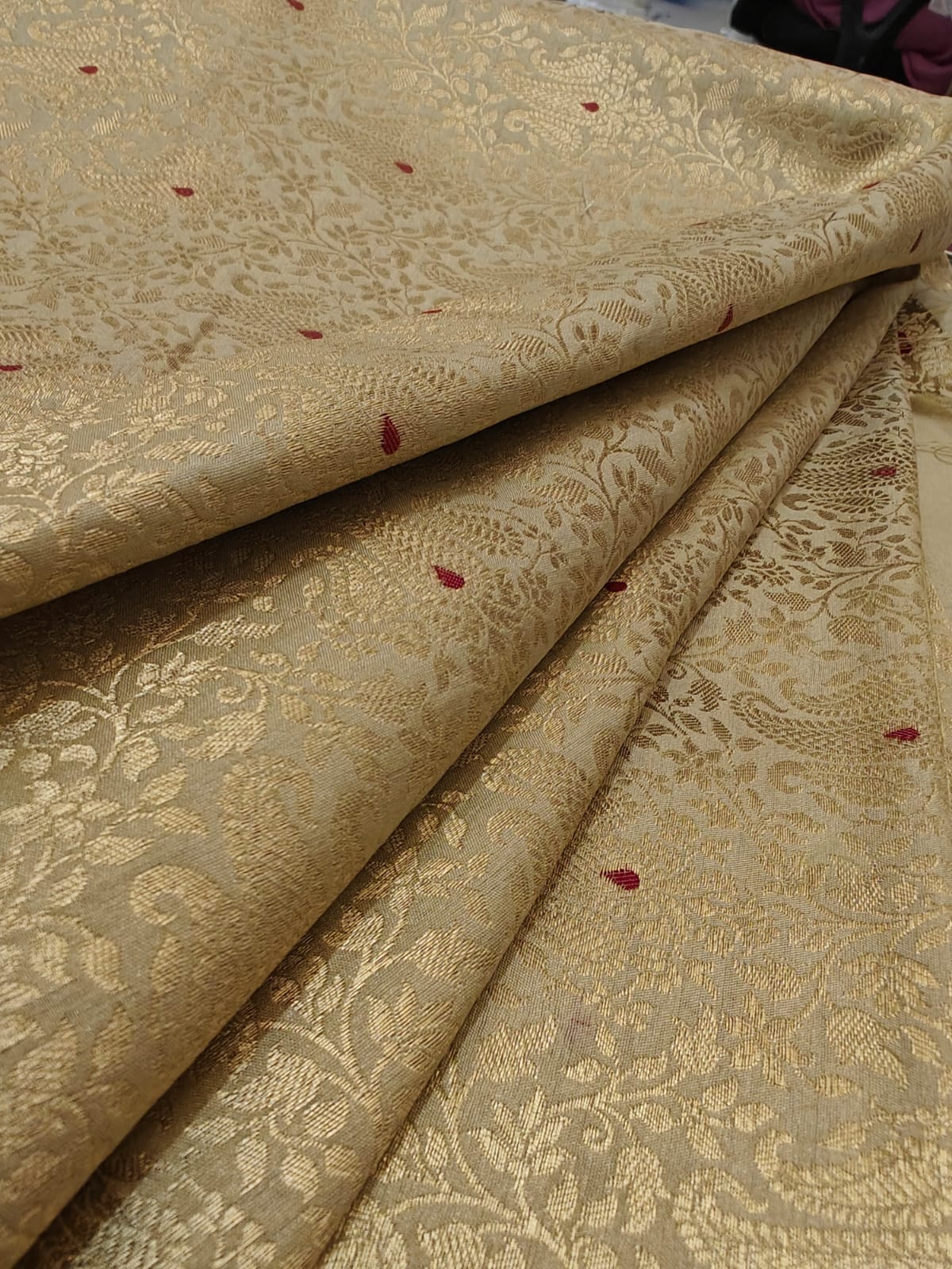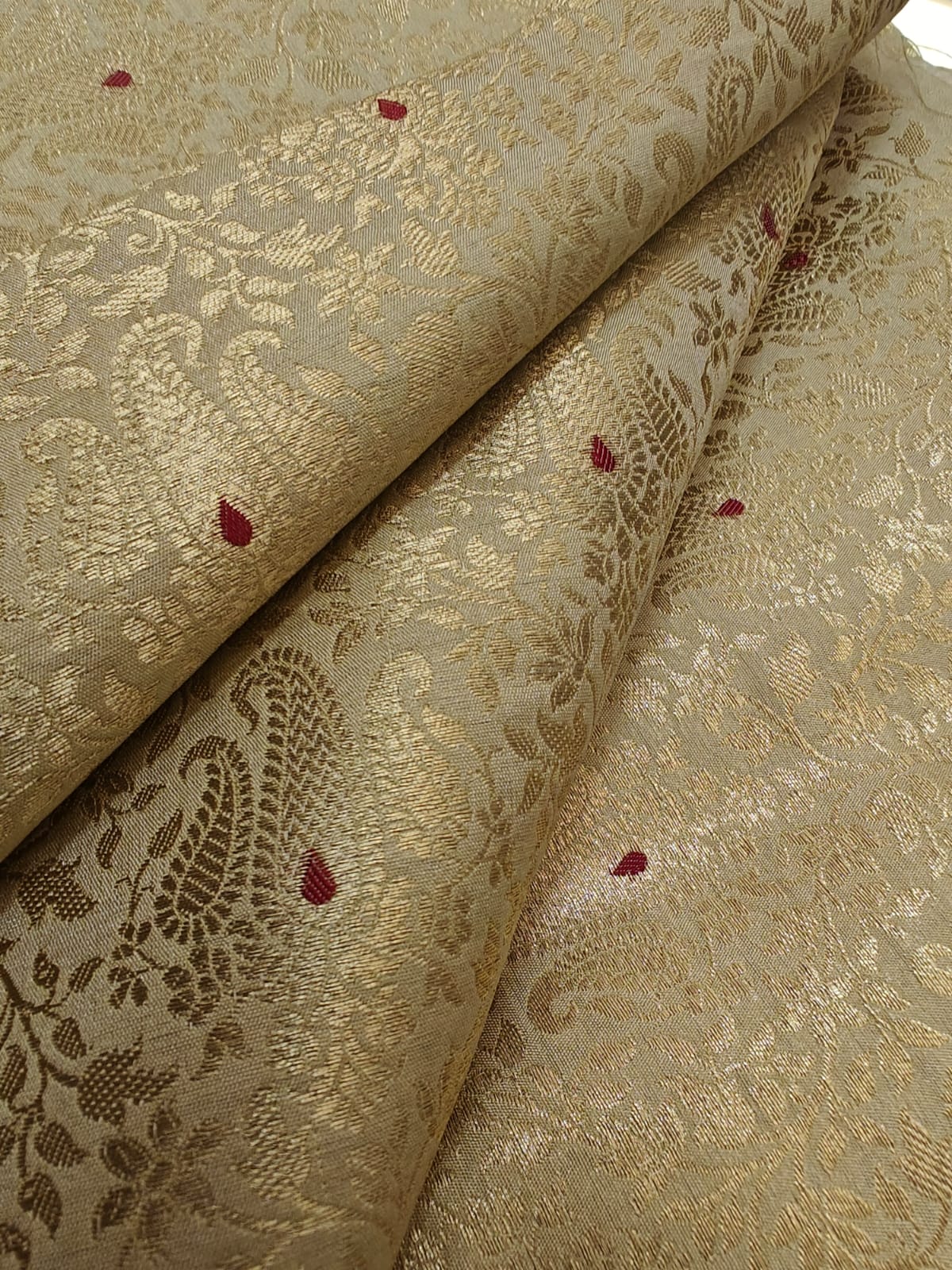 As luxurious as it seems, the art of brocade has transcended from the age old era of opulence and royalty. Conceptualized as a naksha (design) on paper first, the nakshabandha (designer) translates the design on Banarasi silk weaves, using fine gauze or gold or silver threads with immaculate precision into patterns that range from artistic elaboration to minimalistic intricacy. Romance with royalty in your outfit daily.