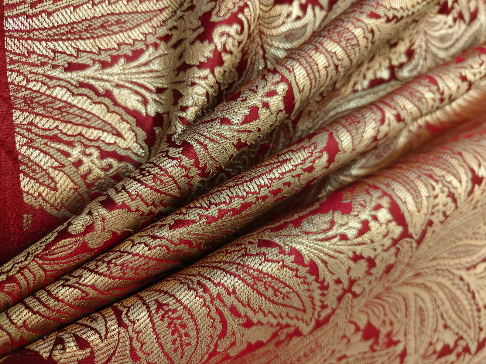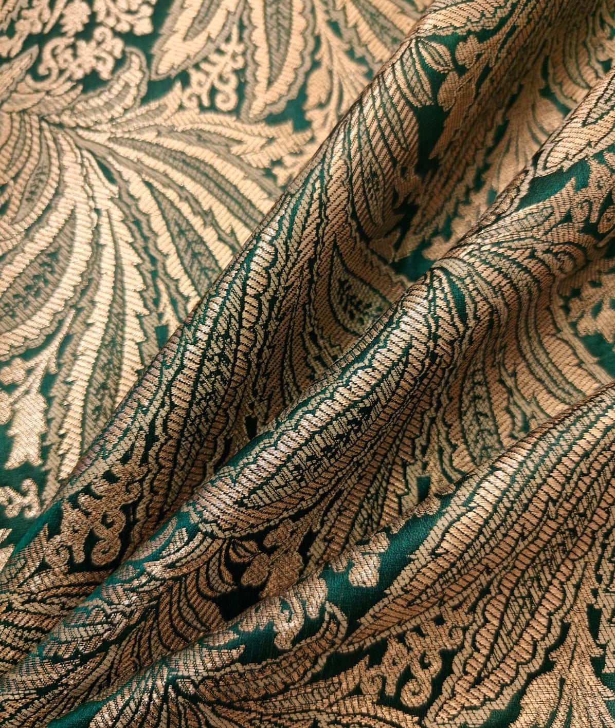 As luxurious as it seems, the art of brocade has transcended from the age old era of opulence and royalty. Conceptualized as a naksha (design) on paper first, the nakshabandha (designer) translates the design on Banarasi silk weaves, using fine gauze or gold or silver threads with immaculate precision into patterns that range from artistic elaboration to minimalistic intricacy. Romance with royalty in your outfit daily.