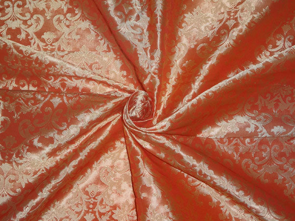 Silk Brocade Fabric Orange x Gold Color 44" wide Bro265[3]