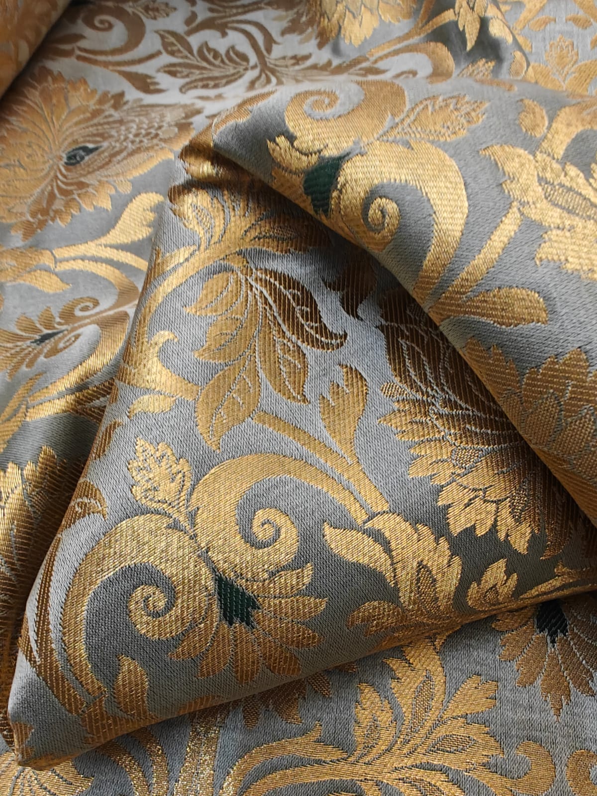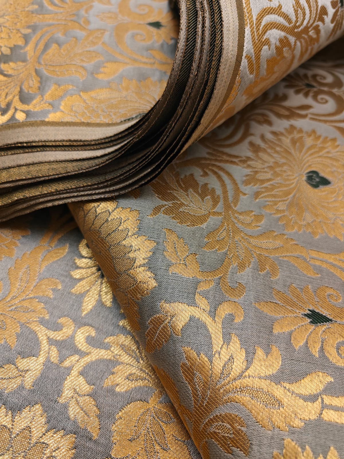 | Usage | Gowns ,Liturgical Brocades, Damasks, Tapestry, and Brocatelle Fabrics used for Historical Period and Renaissance Costumes. Church Vestments and priest robes. |
