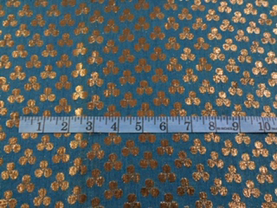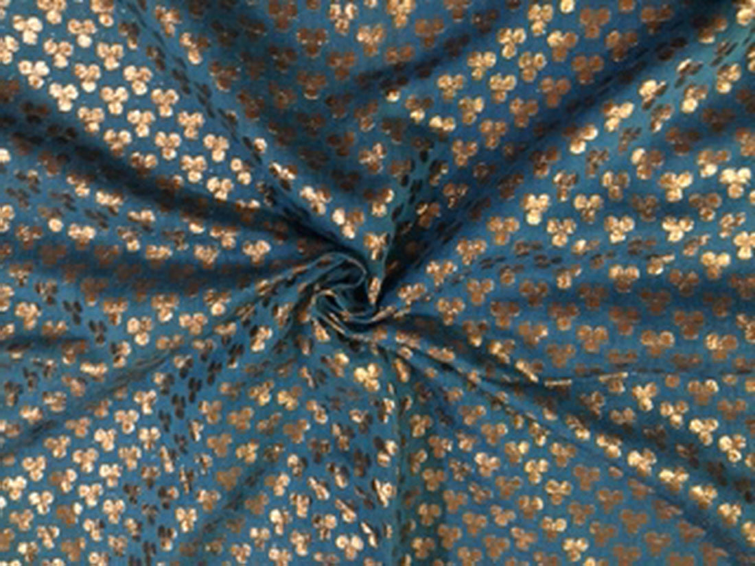 Silk Brocade sheer fabric teal green and metallic gold motive 44" wide BROS35[3]