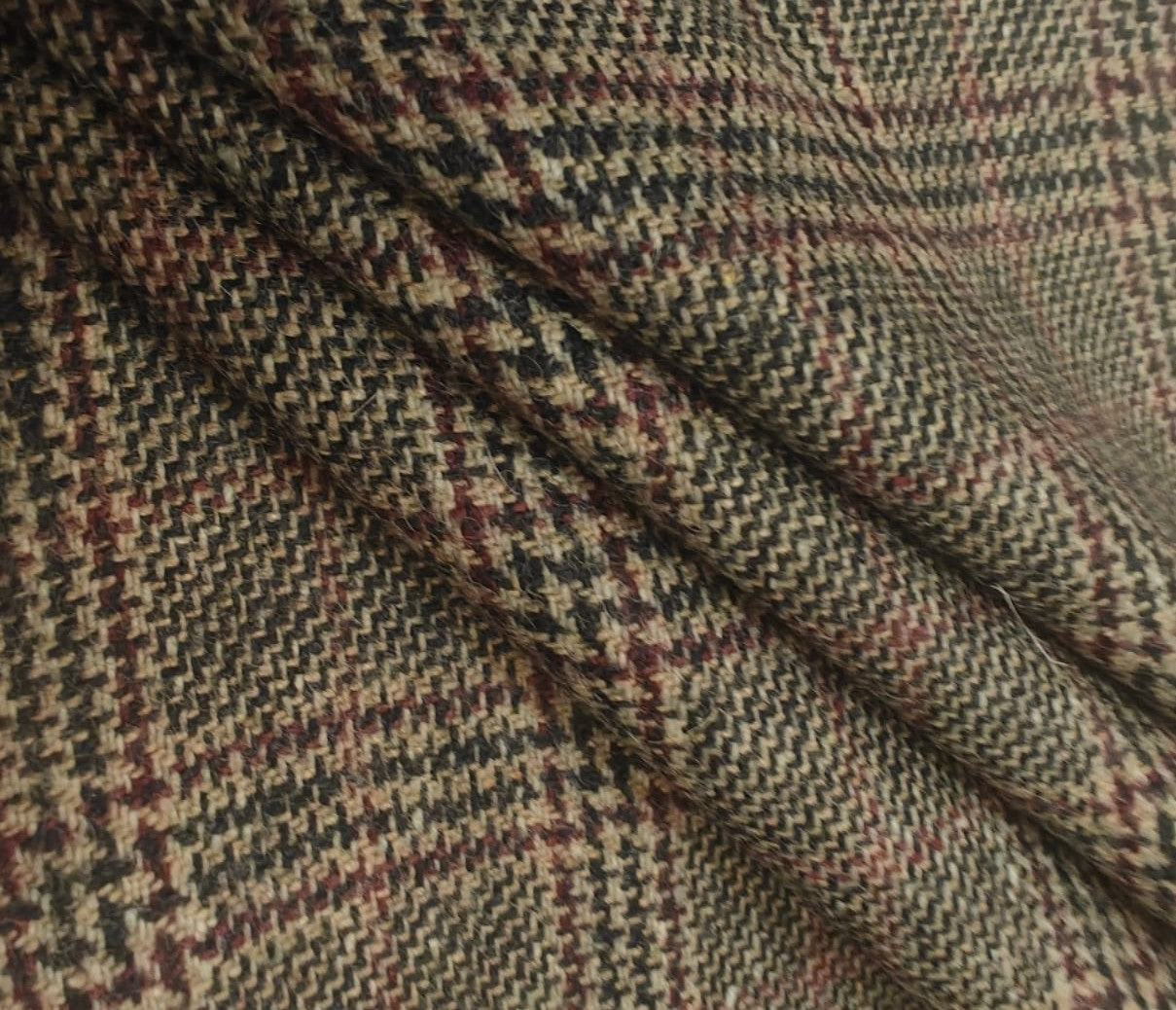 Suiting fabric Checks [plaids] Tweed in tan, black and gold [20017]