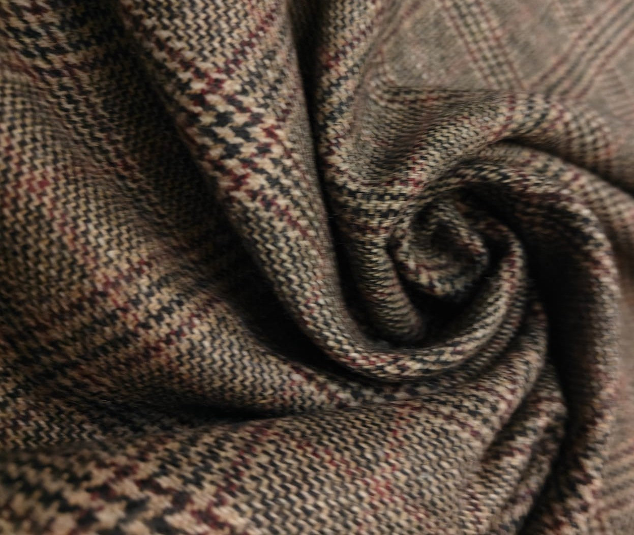 Suiting fabric Checks [plaids] Tweed in tan, black and gold [20017] - The Fabric Factory